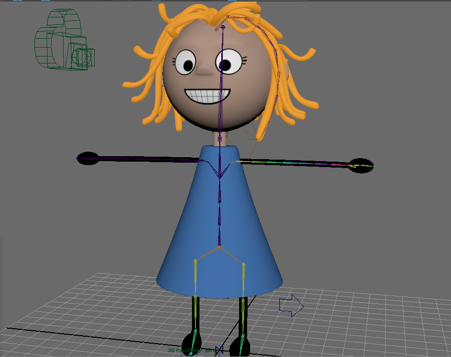 I'm in the process of rigging my character now. Thanks to Super Alan I now have a tidy character with the correct geometry and joints. I've skinned her and added weights and now need to rig.